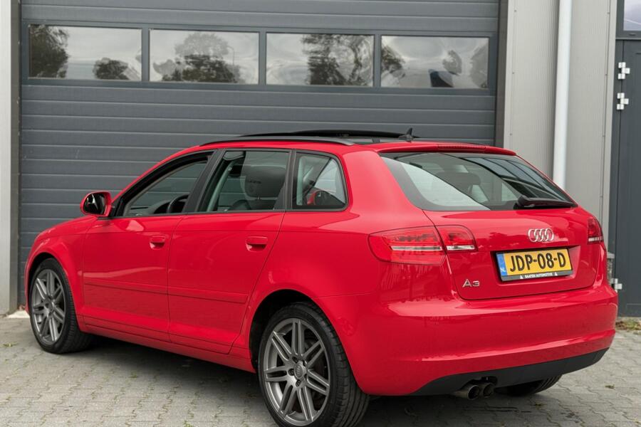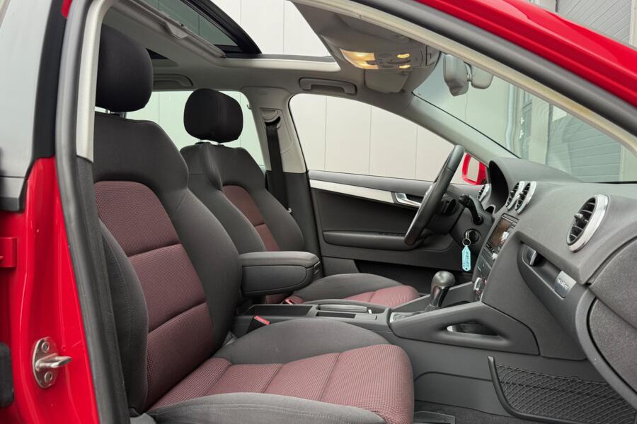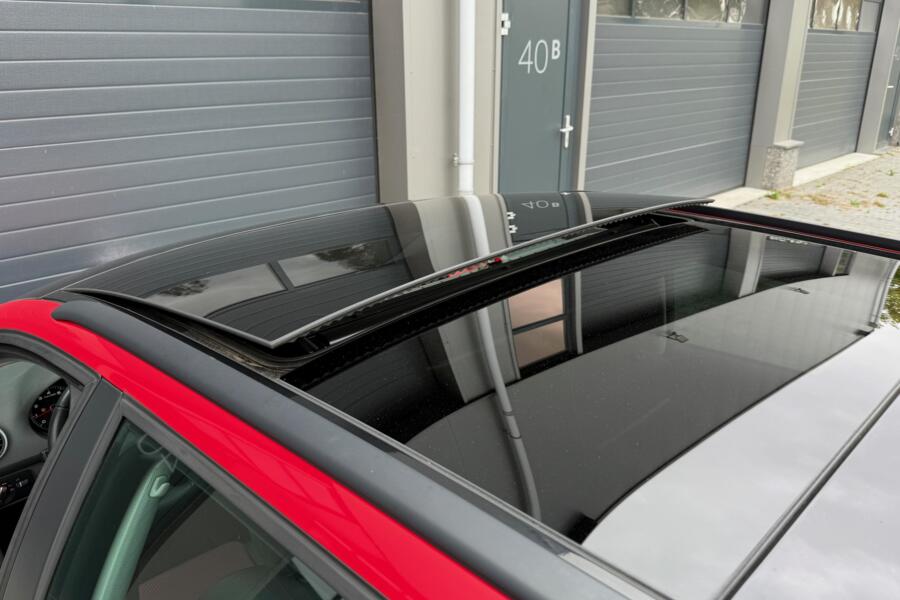 In een diep rood exterieur met 18 inch antraciet sportvelgen en het prachtige volledig glazen panoramadak straalt deze A3 pure klasse uit.